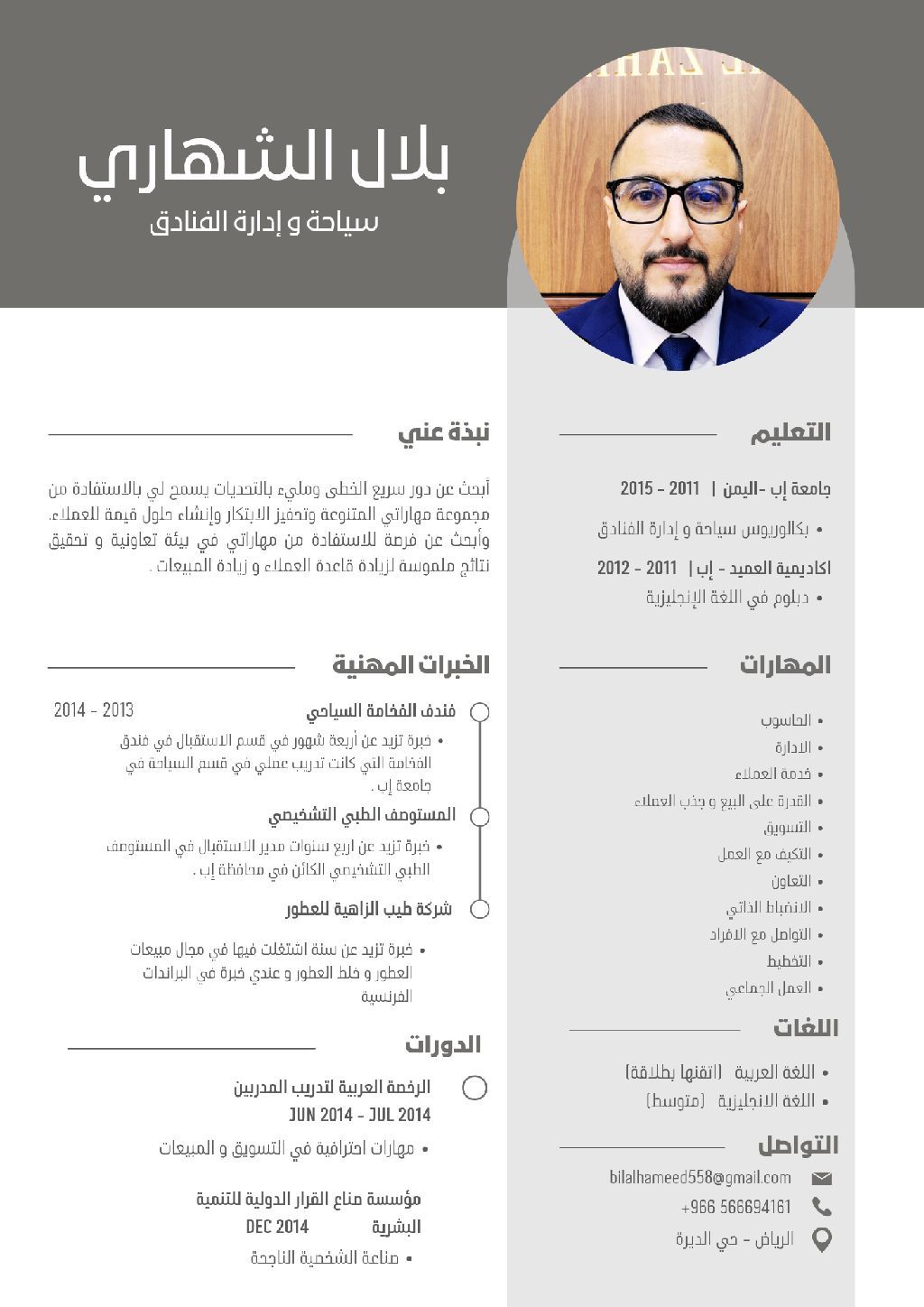 أنا خريج كلية التجارة - بكالوريوس سياحة وادارة الفنادق. وابحث عن دور سريع الخطى ومليء بالتحديات يسمح لي بالاستفادة من مجموعة مهاراتي المتنوعة وتحفيز الابتكار وانشاء حلول قيمة للعملاء. وابحث عن فرصة للاستفادة من مهاراتي في بيئة تعاونية وتحقيق نتائج ملموسة لزيادة قاعدة العملاء وزيادة المبيعات