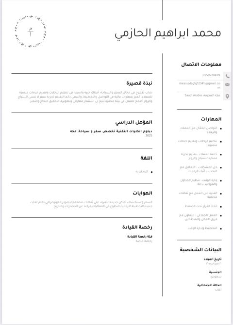 أنا شاب طموح وابحث عن وظيفة خريج 2025 بمعدل 3.90 تخصص سفر وسياحة دبلوم وأقدر اشتغل في أي مكان في السعودية