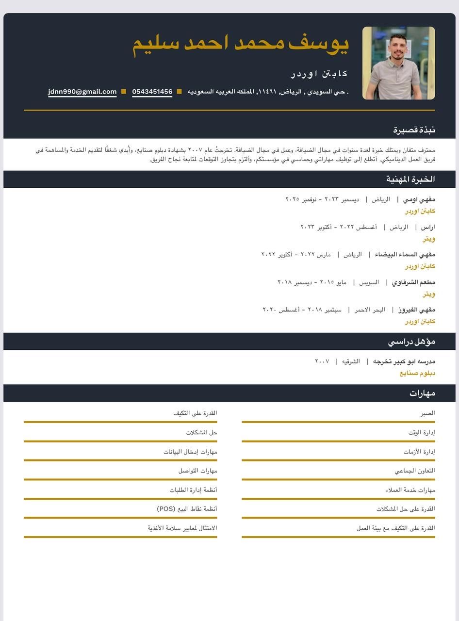 ابحث عن عمل إقامة سارية موجود في الرياض كابتن أورد وايترا
