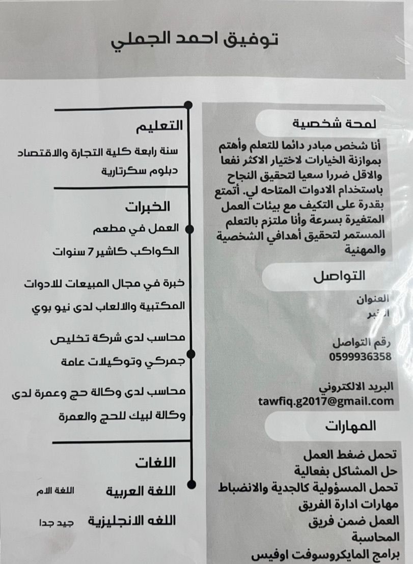 ابحث عن عمل كاشير في أي مجال الخبرة مطاعم تسكير حساب اليوميه خبرة في مجال الكاشير 10 سنوات إقامة سارية كرت صحي ساري رخصة سارية الجنسية يمني العمر 33 سنة والسي في تبعي بصورة الاعلان