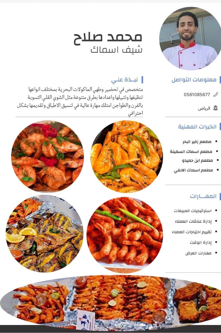 ابحث عن عمل أنا شيف سمك خبر 12 سنة في المجال الأسماك أزي كان في الزياض تمام أو غير الرياض أنا جاهز لي نقل الكفيل أهم شيء يكون مع ناس كويس وأنا أقبل الشروط أهم حاجة يكون مكان كويس وناس محترم شكرا لي الجميع