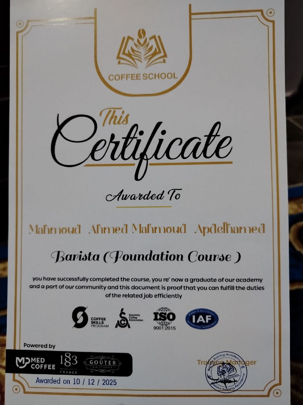 ابحث عن عمل باريستا ولدي شهادة خبرة في الباريستا موجود إقامة سارية الاسم. محمود أحمد. مصري الجنسية
