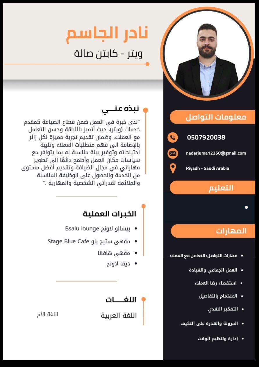 ابحث عن عمل الجنسية سوريا مقيم زيارة العمر 22 سنة خبرة موجود في CV في الصورة