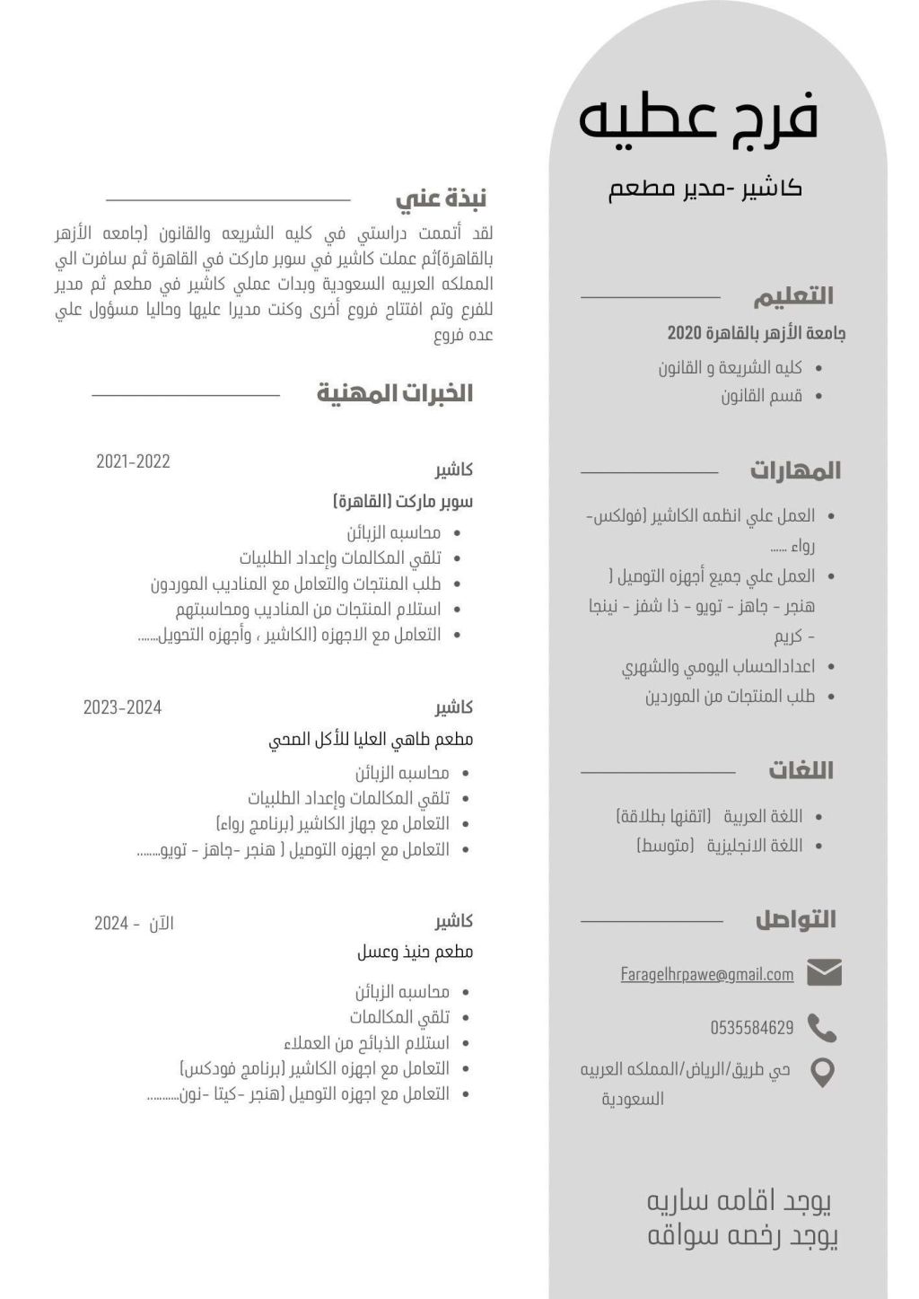 كاشير ومدير مطعم موجود في الرياض ابحث عن عمل أجيد التعامل مع أنظمة الكاشير (رواء - فودكس loyverse أجيد التعامل مع تطبيقات التوصيل (هنجر - كيتا - جاهز - ذا شفز نون - تويوا. أجيد تقفيل اليوميات وأجيد حساب الرسبي وأجيد حساب التكاليف أجيد التعامل مع الزبائن اعمل ضمن فريق واعمل منفردا موجود إقامة سارية وموجود رخصة سواقة اشتغلت في مطعم طاهي العليا للأكل الصحي ومطعم حنيذ وعسل ومطعم وقت الحمام