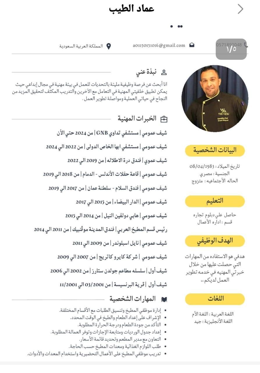 I work as an executive chef with more than 20 years of experience in managing central kitchens and hotels. I am looking for work