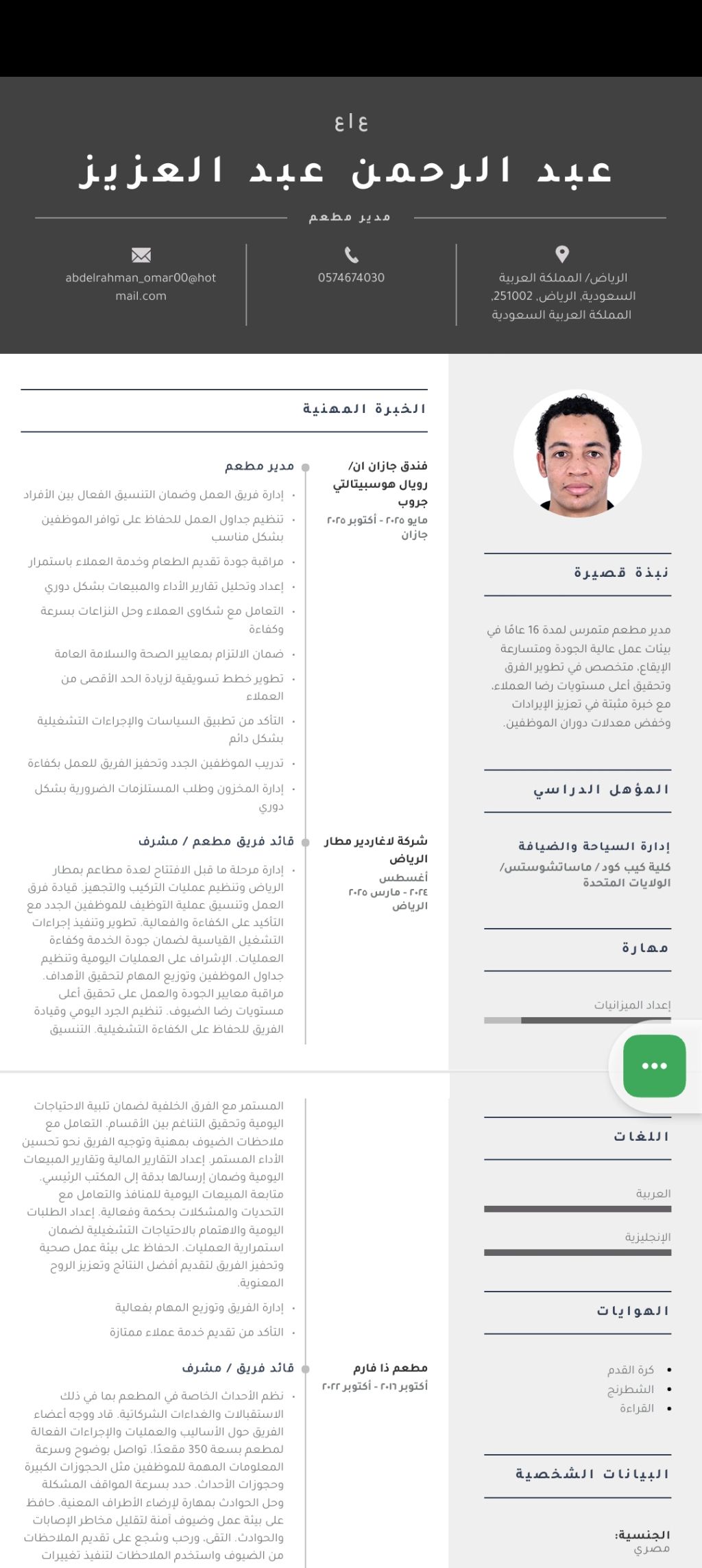 ابحث عن وظيفة مدير مطعم أو مساعد مدير، لدى خبرة طويلة في مجال المطاعم والفنادق الخمس نجوم في مصر وأمريكا ودبي والسعودية، أتحدث الانجليزية بطلاقة بجانب اللغة العربية، لدي اقامة قابلة للتحويل وجاهز لمباشرة العمل فورا، السيرة الذاتية والشهادات متاحة عند الطلب