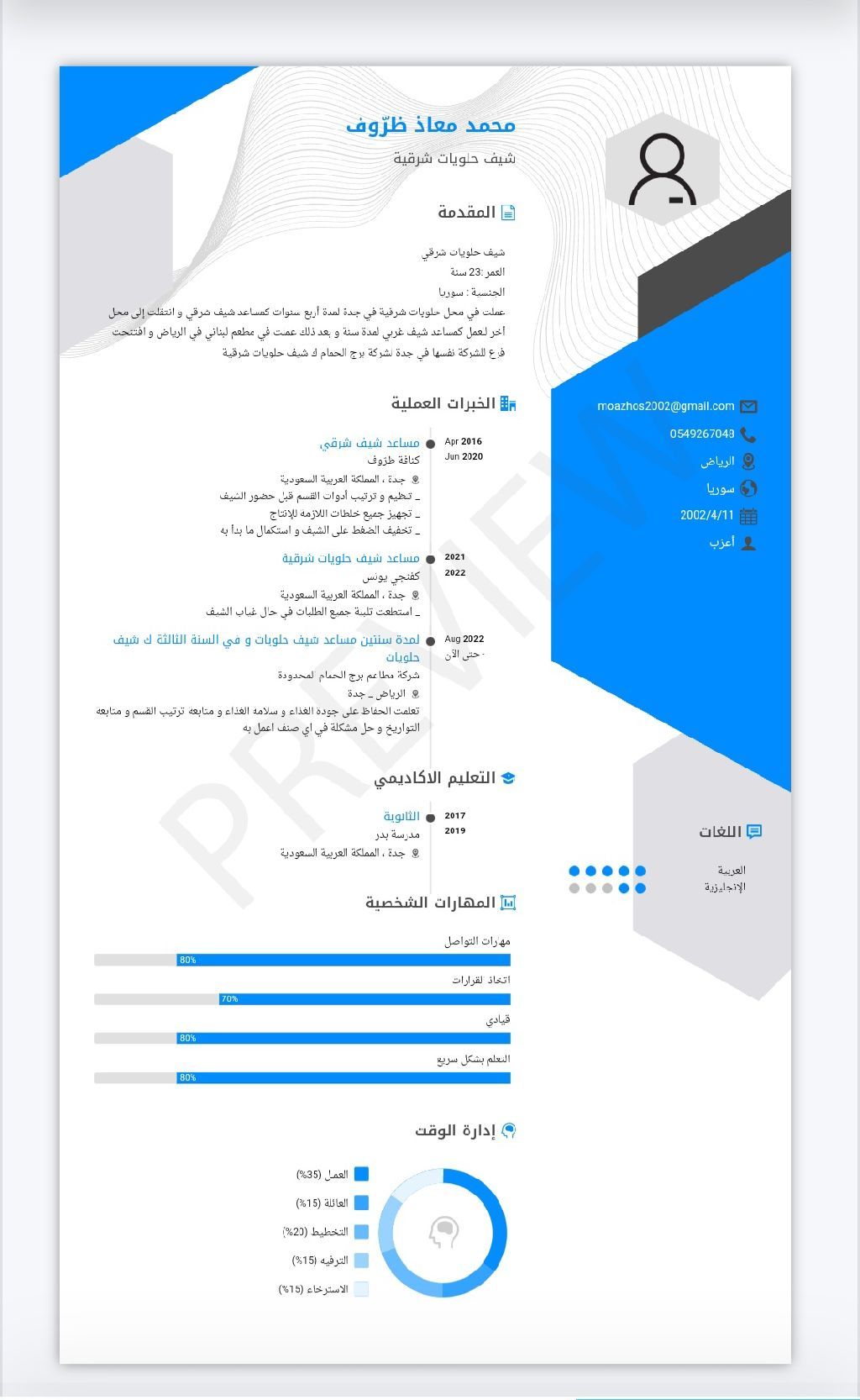 مساعد شيف حلويات شرقية وغربية عمري 23