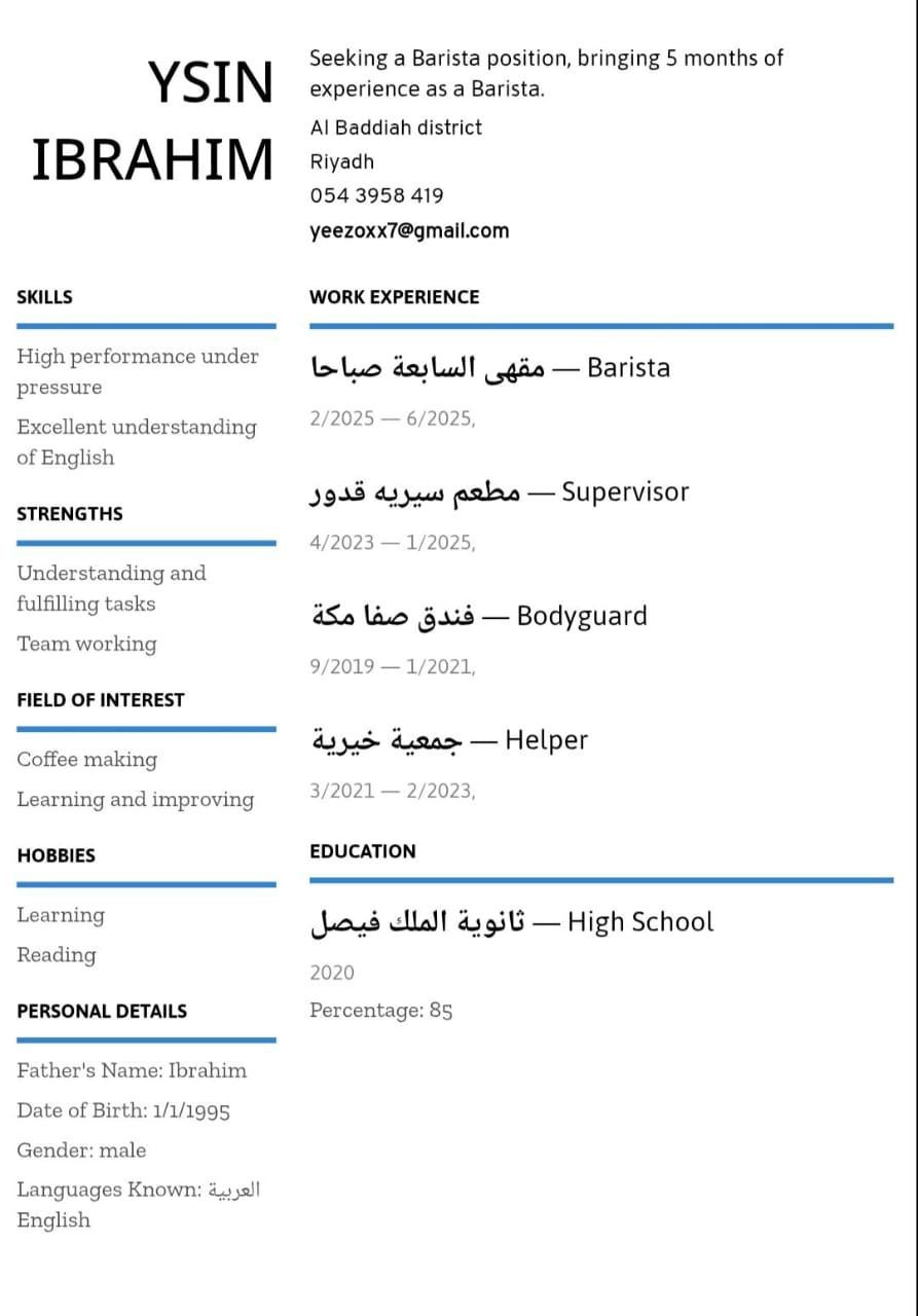 Barista looking for workI have six months of experience, quick to learn and adapt