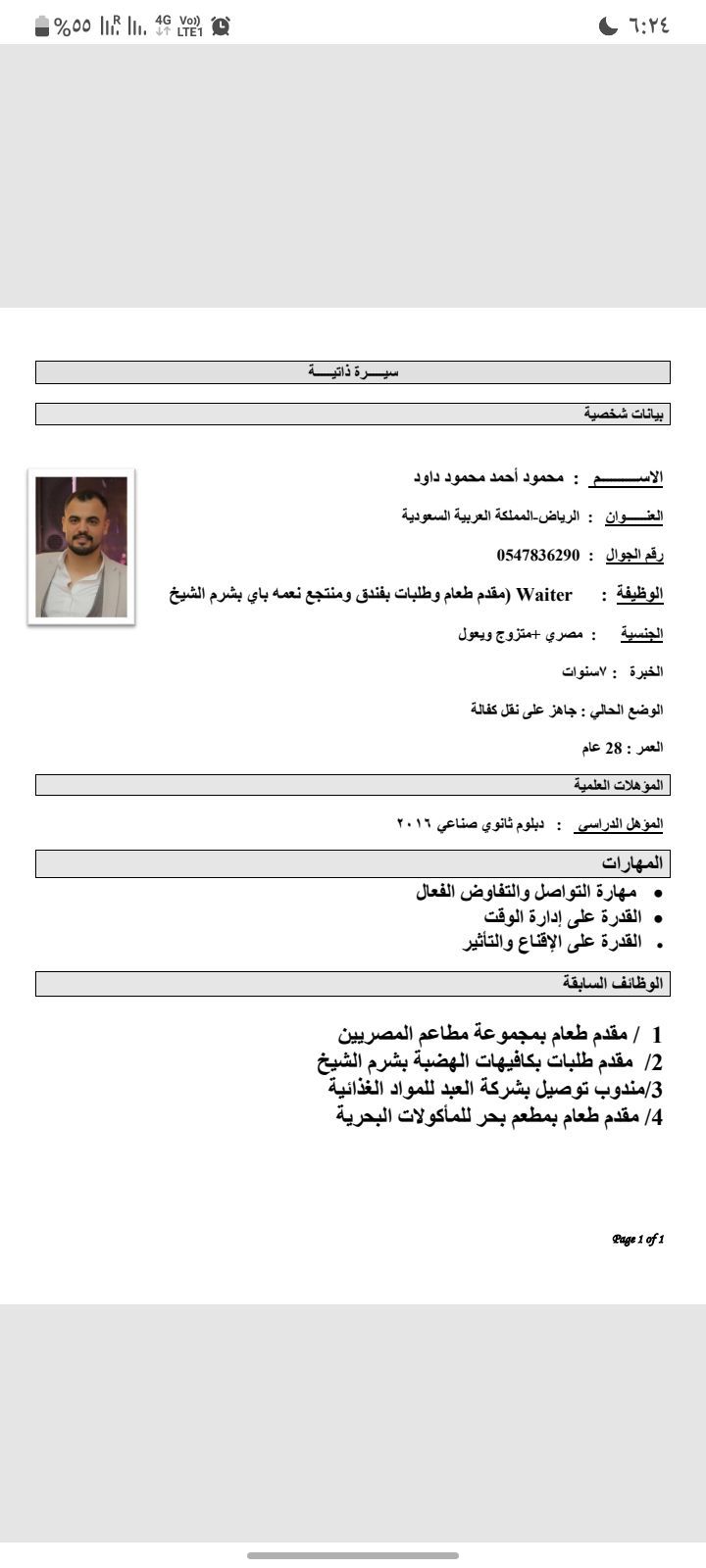 مقدم طعام وكافيهات مقيم حاليا في الرياض. ابحث عن عمل