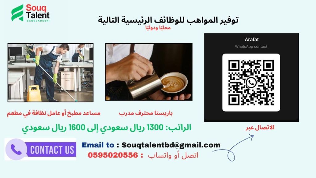 We are providing talent (barista) kitchen helper) Cleaner) to the companies with the transferable Iqama