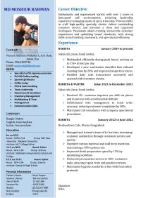 I am Moshiur Rahman from Bangladesh. I need a barista job. I have 2. 6 years experience