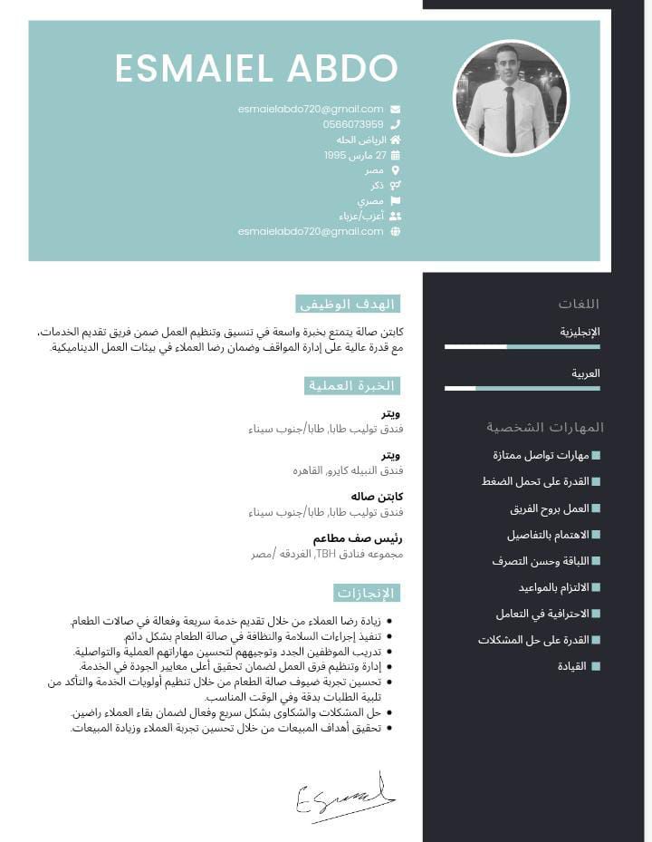 أناجيت من مصر بقالي حوالي 10 أيام ومتواجد في الرياض وبدور على شغل في أي مطعم أو كافية أنا كنت شغال في مصر في الفنادق وعندي شهادات خبرة من الأماكن اللي اشتغلت فيها