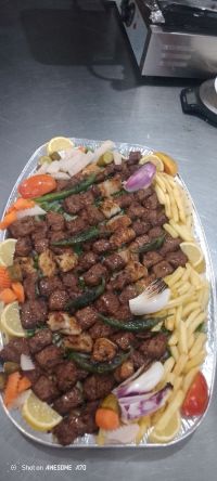 معلم بروستد عادي وحراق وبرجر كريسبي مشاوي أوصال لحم شيش طاووق كباب لحم كباب دجاج عا الفحم رز بخاري ورز برياني عصير كوكتيل رمان