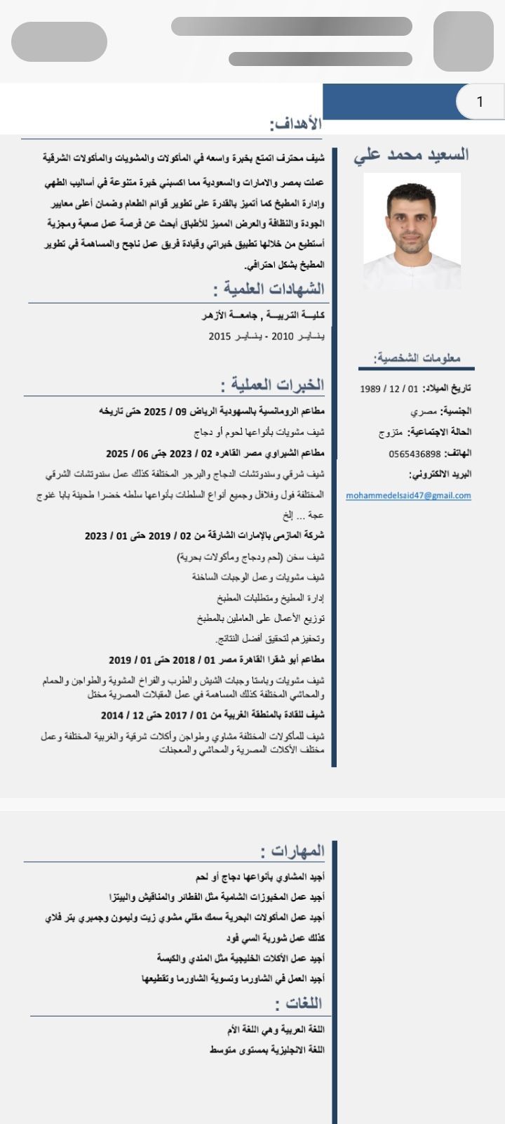 أنا أريد عمل أنا شيف خبرة أكثر من 15 سنة