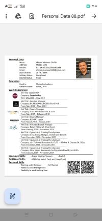 مدير تشغيل ومنطقة وتدريب واستشاري تطوير مطاعم وكافيهات ولاونج بكالوريوس ادارة الأعمال والمحاسبه خبرة قوية (القدرة علي تطوير وهندسة المنيو مرجعه وضبط التكليف عمل راسبي تطبيق قواعد السحب من المخزون وقواعد الطلبيات مع تقليل المصرفات تدريب الطاقم الاداري والموظفين علي نظام الاغذايه وأخطاء البلدية عمل نظام محاسبي كامل مكسب وخسارة ادارات العمليات اليوميه وتفعيل العروض تقديم حلول لكل مشاكل في التشغيل