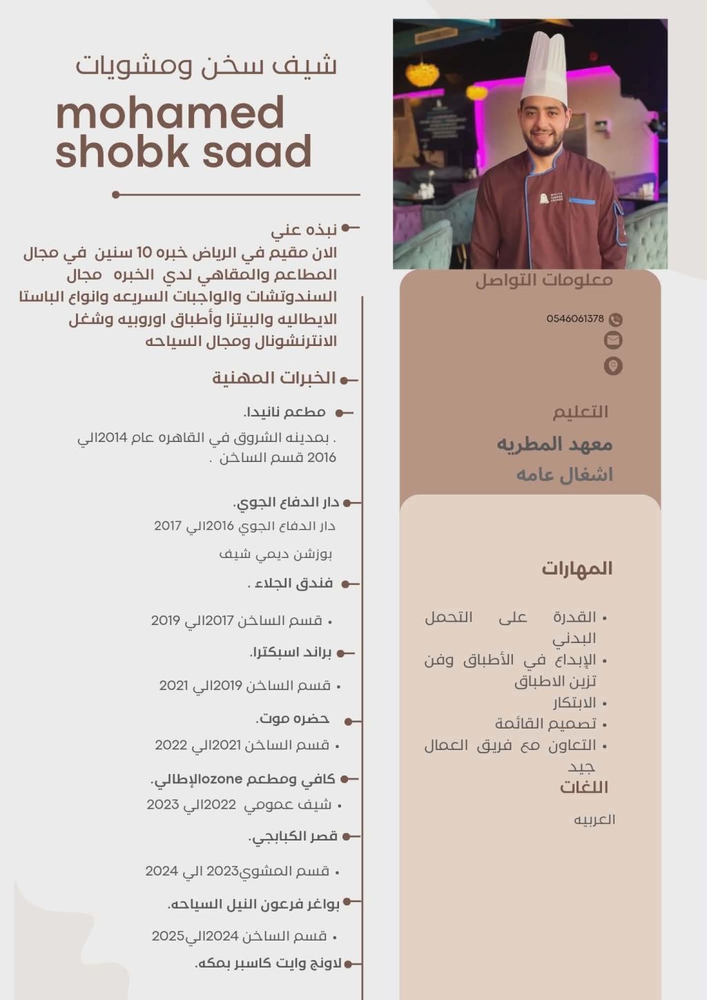 أنا شيف سخن وأنترناشيونال لدي اقامة ساري