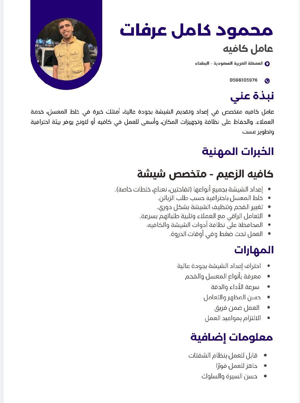 ابحث عن عمل عامل كافية واسعي في العمل في الكافيه ولونج