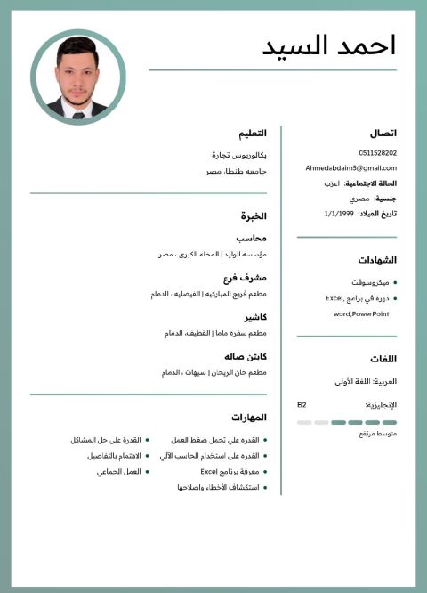 أحمد السيد مشرف فرع وخبرة بالكاشير وادارة المطاعم وخبرة بالفودكس والتعامل مع الزبائن وتسويق المنتجات واشراف المطاعم ولدي خبرة بتطبيقات التوصيل هنجر، وكيتا، وتقفيل اليوميه والتقارير