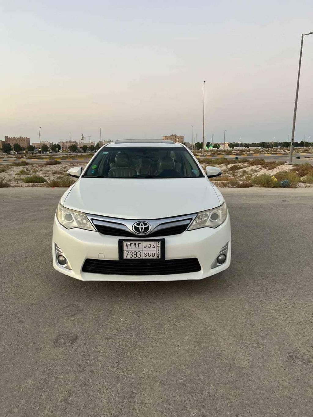 Toyota Camry 2014 GLX model, imported from Abdul Latif Jameel Saudi Arabia, mileage 323,000 km, exterior color pearl white, interior color beige, in agency condition, free from repainting and bodywork, engine in agency condition. Specifications: GLX model, 4-cylinder engine, smart entry key, sunroof, cruise control, steering wheel controls, standard dashboard, screen, rear camera, rear air conditioning, fabric seats.