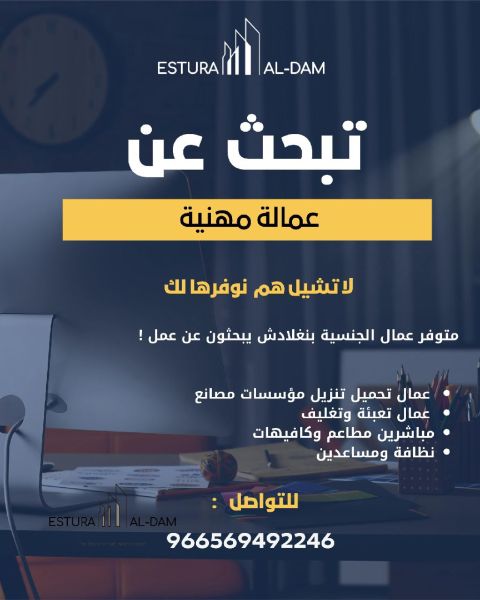 متوفر عمال الجنسية بنغلادش يبحثون عن عمل نظافة ومساعدين ومباشرين مطاعم وكافيهات للتنازل راتب 1200 + اعاشة على المطعم وأول مرة نقل كفالة