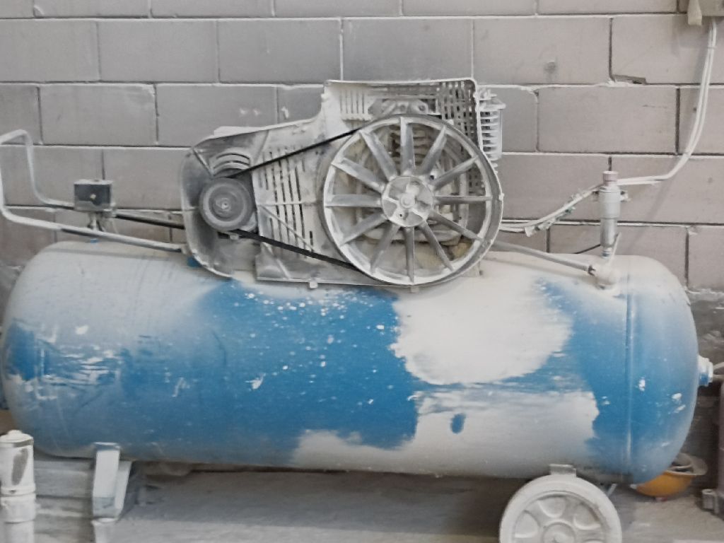 كمبروسر هواء (ضاغط هواء) من طراز NAMACCO. قدرة المحرك تبلغ 7.5 حصان (HP) السعة التخزينية المذكورة على الخزان هي 500 لتر. يتميز بتصميم اسطوانة مزدوجة للخدمة الشاقة. يستخدم لتشغيل الأدوات الهوائية المختلفة في الورش والمواقع الصناعية