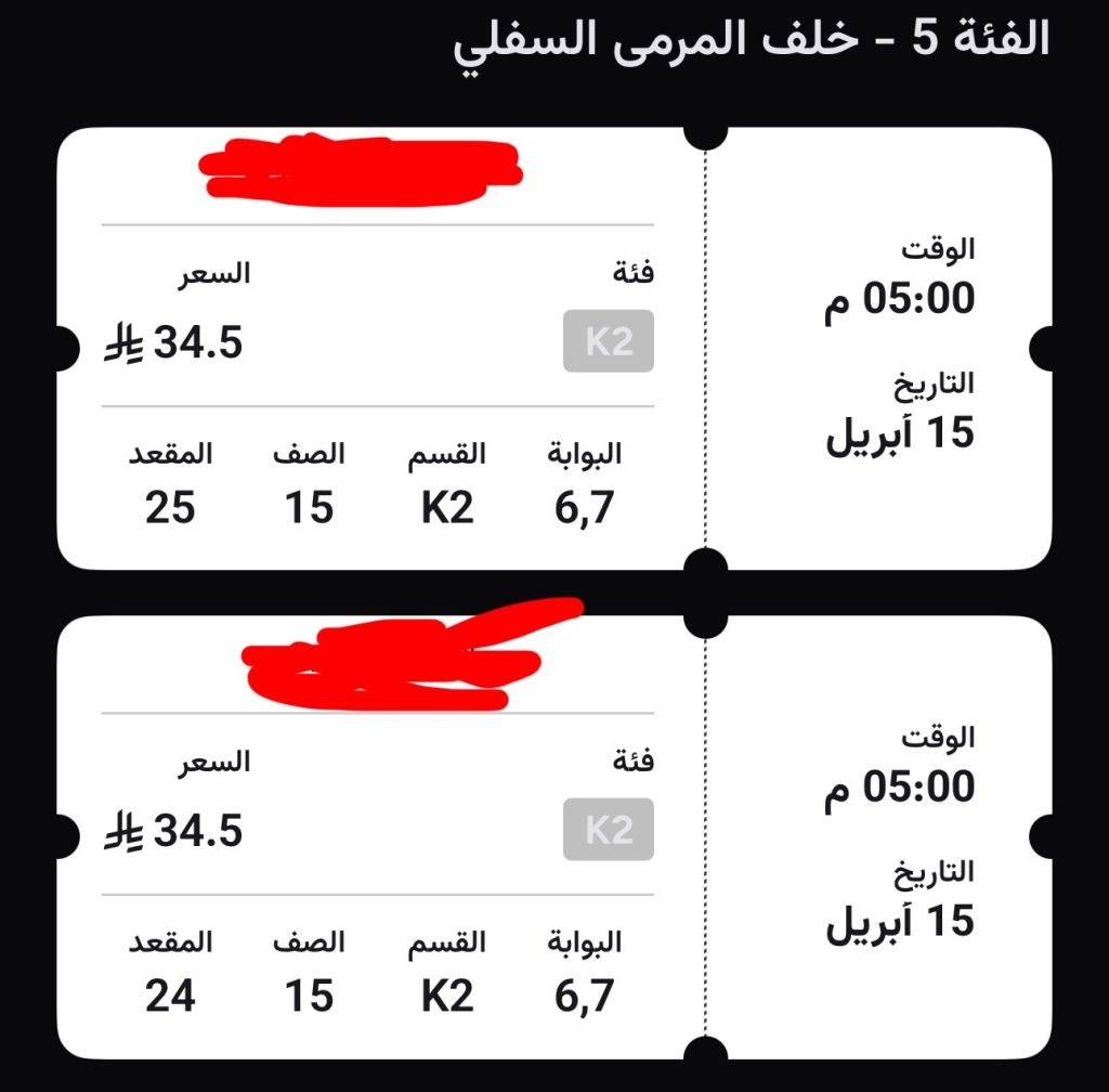 للبيع تذكر تين لمباراة النصر والاتفاق بي السعر الأصلي 79
