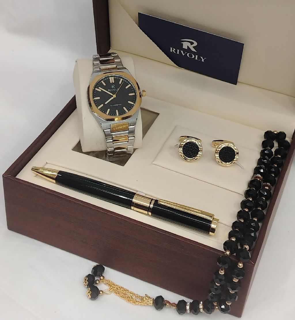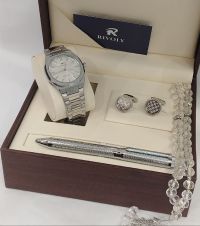 ريفولي جديدنا طقم رجالي ساعة ستيل صب. تصميم الا دمر النظيف. ضمان سنة مع كبك نظيف مع قلم نظيف مع سبحه مع علبه فخمة ضمان سنة السعر 150