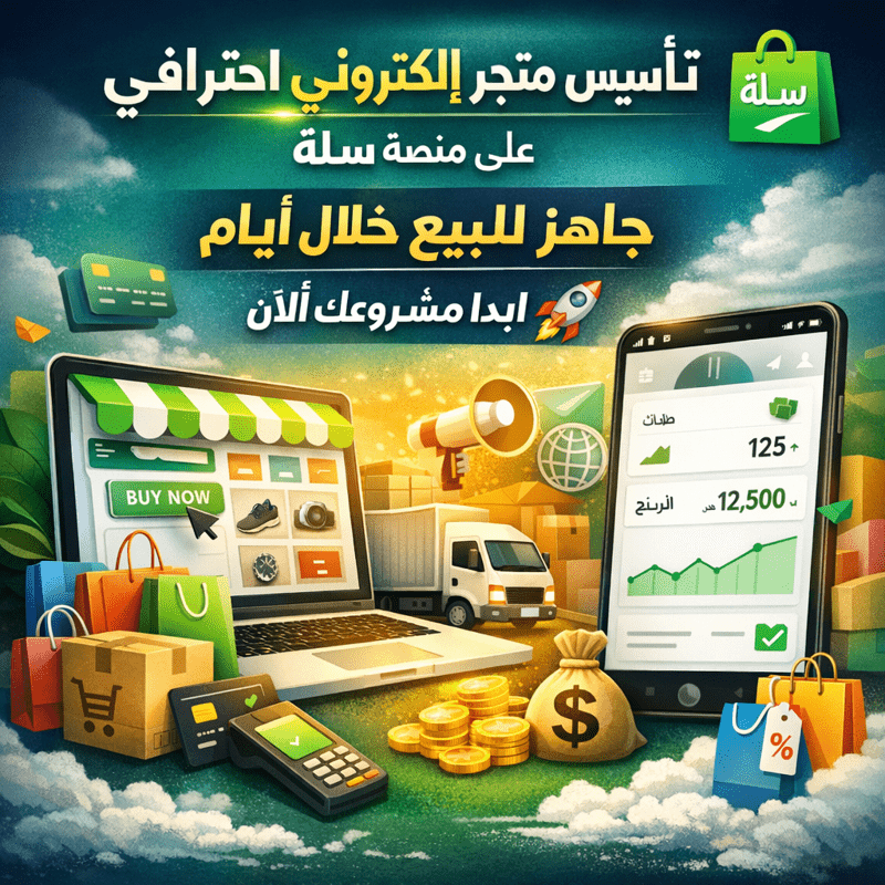 متجرك الاحترافي على سلة خلال أيام. هل تريد بدء مشروعك اونلاين بدون تعقيد نؤسس لك متجر الكتروني احترافي بالكامل على منصة سلة جاهز للبيع من أول يوم. تصميم احترافي متجاوب مع الجوال. اعداد بوابات الدفع والشحن. تجهيز صفحات المنتجات بشكل تسويقي. تحسين تجربة المستخدم وزيادة المبيعات. دعم واستشارة بعد التسليم. الدفع بعد تأسيس المتجر بالكامل. ابدأ تجارتك الآن واترك لنا التنفيذ