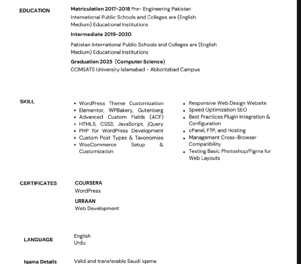Immediate Joining Dear Sir/ Madam, My name is Ahmed Asif, a newly graduated Computer Science student with a recent internship in WordPress development. I am interested in participating in your exhibition to showcase my beginner - level skills and gain professional learning and exposure. Kindly consider my request
