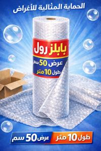 تغليف آمن توصيل مضمون بابلز رول - فقاعات هواء بابلز. حل التغليف المثالي لحماية منتجاتك من الصدمات والخدوش أثناء التخزين أو الشحن. خامة عالية الجودة متوفر بمقاسات متعددة خفيف وسهل الاستخدام مثالي للاجهزة، الزجاج، الأثاث، التغليف الصناعي وغيرهم شحن سريع داخل المملكة مناسب لجميع الصناعات تواصل معنا الآن وأطلب الكمية اللي تناسبك (رقم الجوال يظهر عند الضغط على زر تواصل)