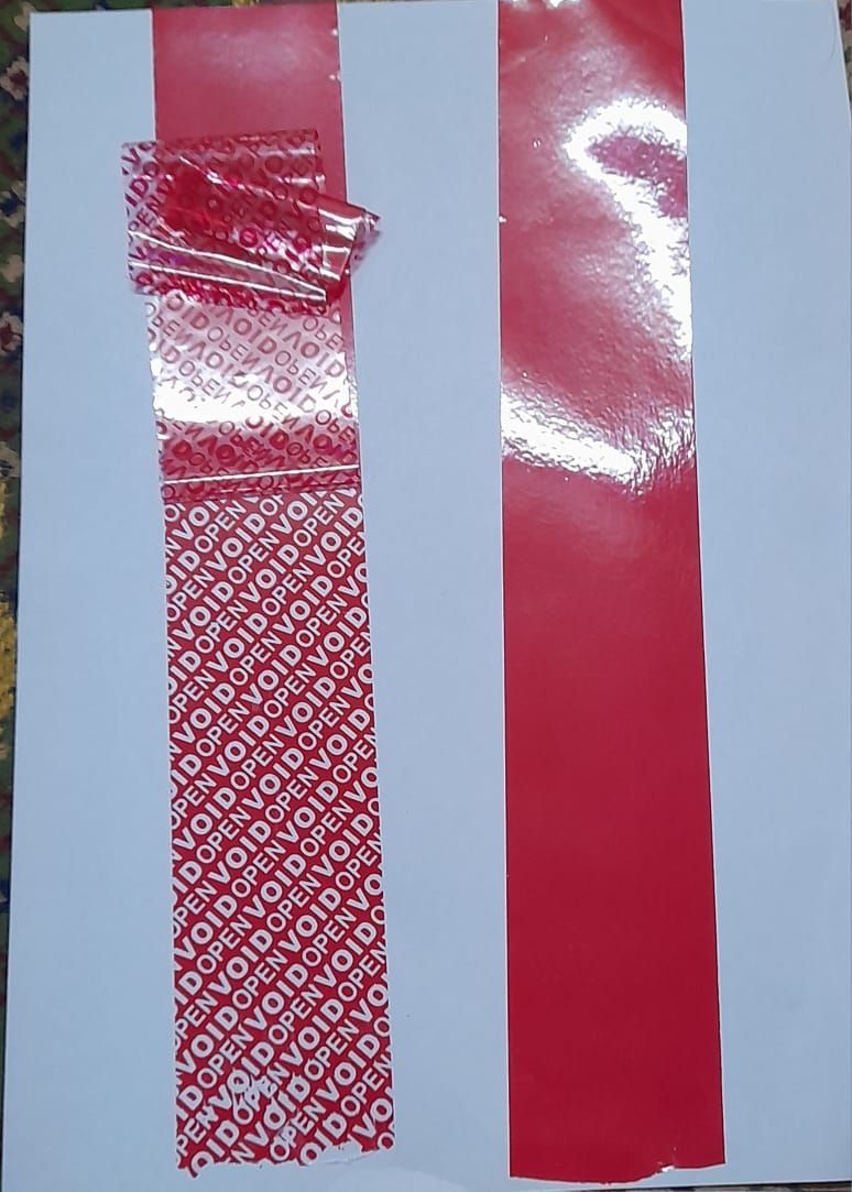 شريط لاصق أمني security Tape يستخدم في أمان مختلف أنواع التغليف. أظروف أو علب أو كراتين. طول الرول 50 متر عرض الرول 2 انش الكمية المتوفرة 500 رول السعر الرول الواحد 20 ريال