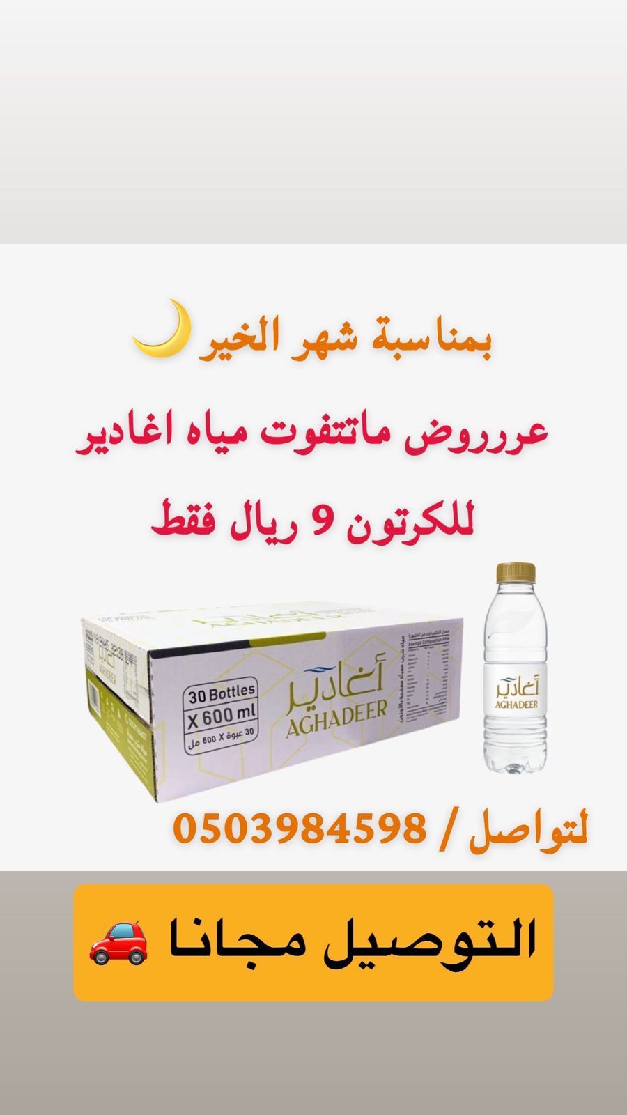مندوب مياه أغادير توزيع وتوصيل داخل الرياض كراتين 200 ملي و330 ملي السعر شامل توصيل 9 ريال