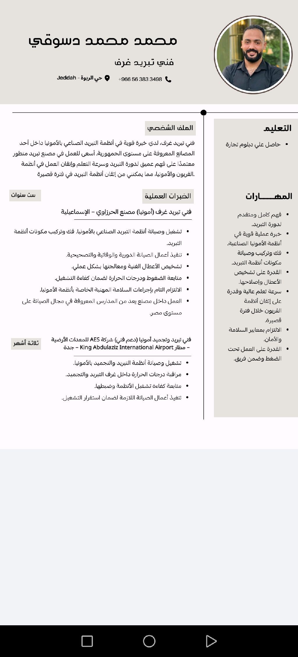 أنا فني تبريد وتجميد غرف أمونيا وابحث عن عمل أنا خبرة 4 سنين ونصف فني تشغيا وصيانة