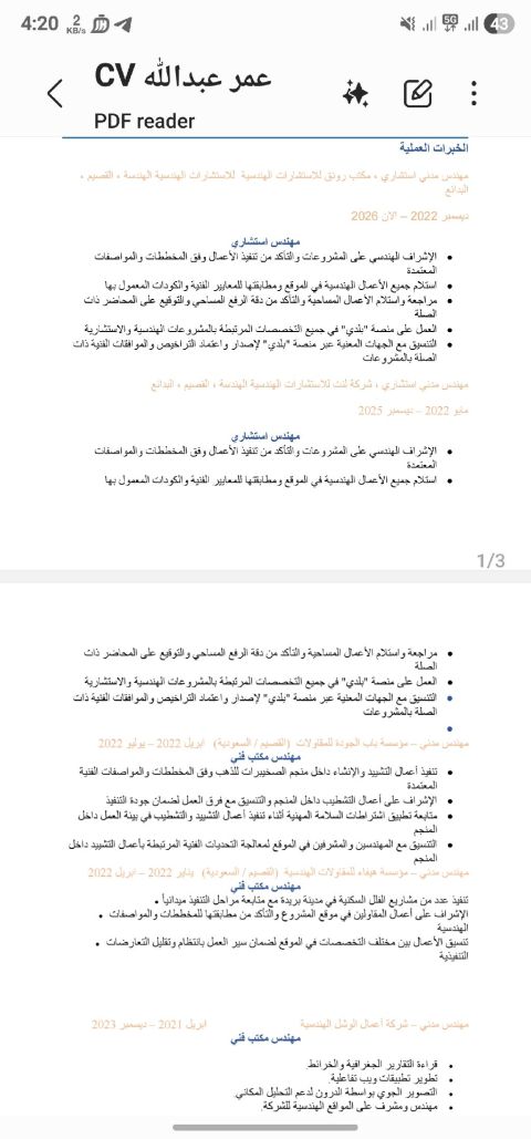 مهندس مدني محترف في الاشراف والتنفيذ والتصميم، أساهم في نجاح المشروع، ضبط التكاليف، والالتزام بالبرنامج الزمني. خبرة ميدانية قوية واجادة البرامج الهندسية واعداد والبرنامج الزمني (AutoCAD - Revit - Civil 3D - Primavera) ابحث عن فرصة وظيفية والتعاون مع ملاك ومقاولين، ومستعد أكون قيمة مضافة حقيقية لمشروعك من البداية حتى التسليم، يماني الجنسية