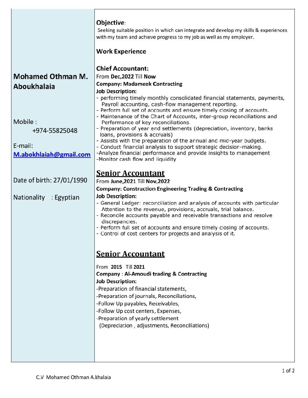 محاسب خريج عام 2010 شعبة محاسبه خبرة 15 عام في مصر وقطر