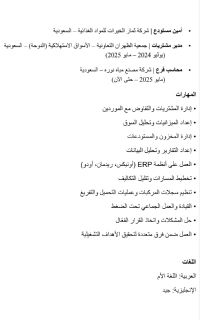 ابحث عن وظيفية مدخل بيانات أو محاسب أو مسؤول مشتريات عملت مدخل بيانات ومسؤول مشتريات خبرة في ادخال 5 سنوات وخبرة في مشتريات 4 سنوات عملت أمين مستودع خبرة في المستودعات 3 سنوات خبرة في وظيفية حركة وتشغيل (مشرف حركة) في النقليات متابعة الشاحنات من صيانة والفحص ومتابع مع سائقين أحمل رخصة قيادة سارية المفعول وإقامة سارية متفرغ وجاهز لنقل في أي مدنية خبرة في برنامج أودو ذو خبرة في برنامج المحاسبية