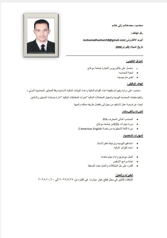 محاسب اشتغلت كاشير في محل قطع غيار سيارات ابحث عن عمل