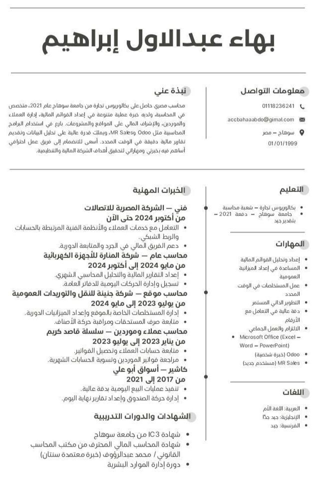 محاسب مصري حديث التخرج 2021، ابحث عن عمل داخل المملكة العربية السعودية