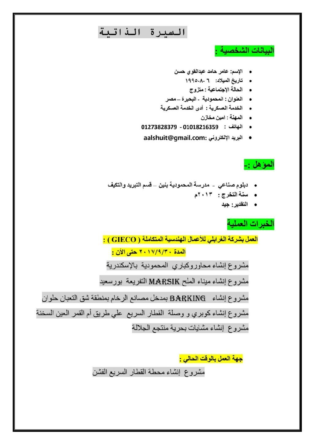 أمين مخازن خبرة أكثر من 12 سنة في ادارة المخازن والعمل علي التنظيم والتنسيق بداخلها