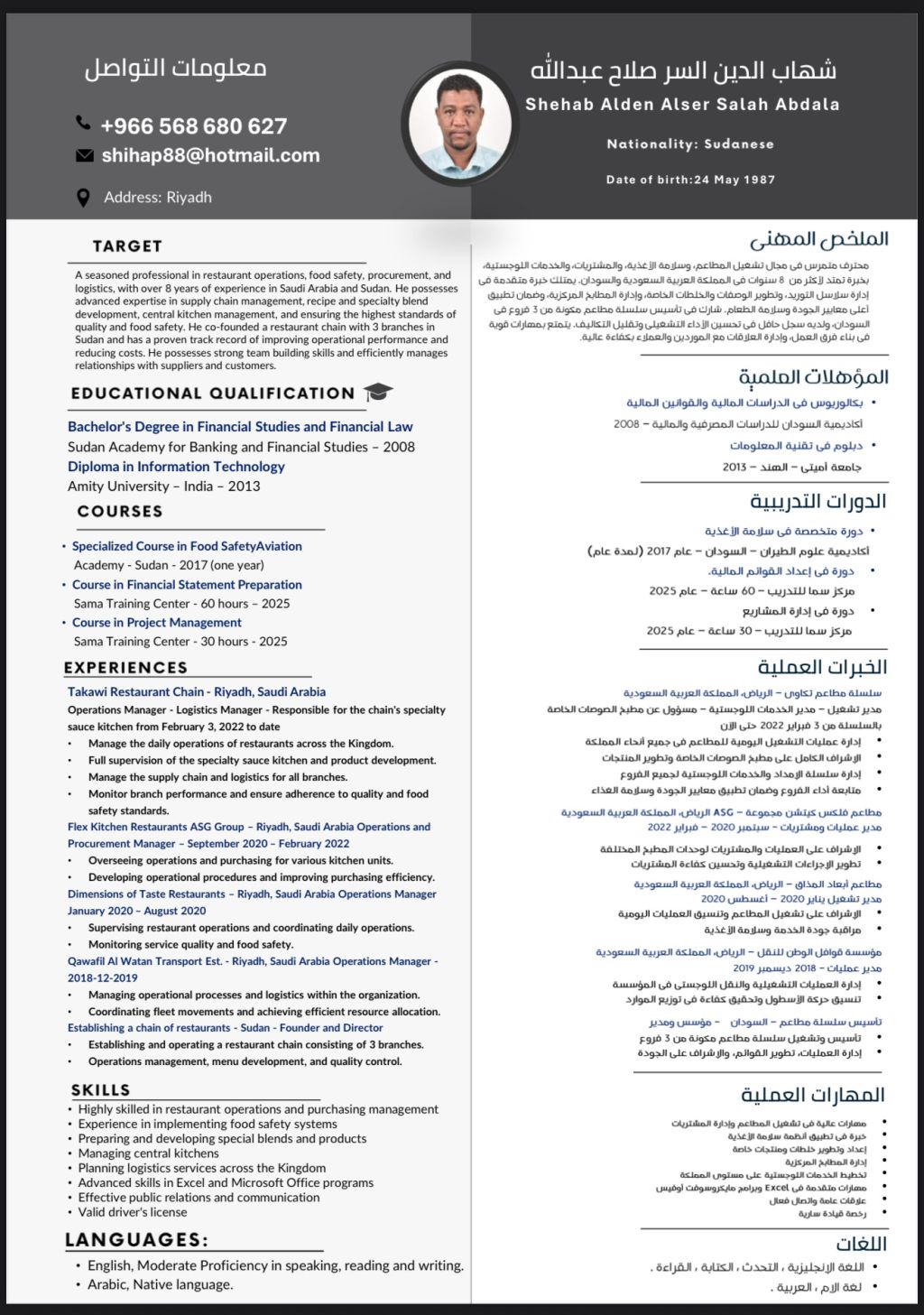خلال مسيرتي، قمت بتطوير مهاراتي في إدارة سلسلة الإمداد، وحققت تحسينات ملموسة في توفير التكاليف وتعزيز علاقات الموردين. تميزت بمعرفتي الشاملة بسوق الموردين المحليين، وحرصي على تطبيق أعلى معايير الجودة. حصلت مع فريقي على شهادتي HACCP تأكيدا على التزامنا بمعايير السلامة والجودة. أتطلع لتطبيق خبراتي في دعم رؤيتكم الطموحة والمساهمة في نجاح شركة كم. مع فائق الاحترام، شهاب الدين