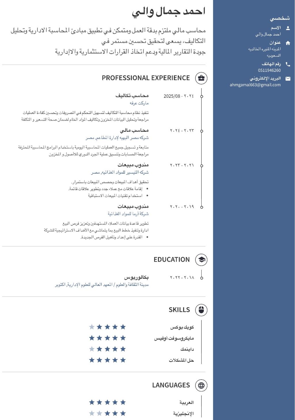 محاسب مصري خبرة ثلاث سنوات حاصل على درجة بكالوريوس في المحاسبة المالية محترف في اعداد القيود اليوميه والمعاملات وتحليل العمليات المالية ومتابعة حساب العملاء والموردين واعداد كشف رواتب العمال والموظفين القوائم المالية واستخدام برنامج كويك بوكس المحاسبي وخبير في برامج مايكروسوفت أوفيس - العمر 26 سنة