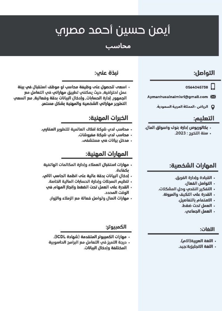 أنا موجود في الرياض محتاج شغل أنا محاسب دفعه 2023 محتاج أيي شغل موظف استقبال كاشير مدخل بيانات مدخل فواتير عندي خبرة في الأكسيل والورد واشتغلت في شركة عقارات الى يعرف وظيفة مناسبة أو فرصه ياريت يتواصل معيه ربنا يجعلوا في ميزان حسنا
