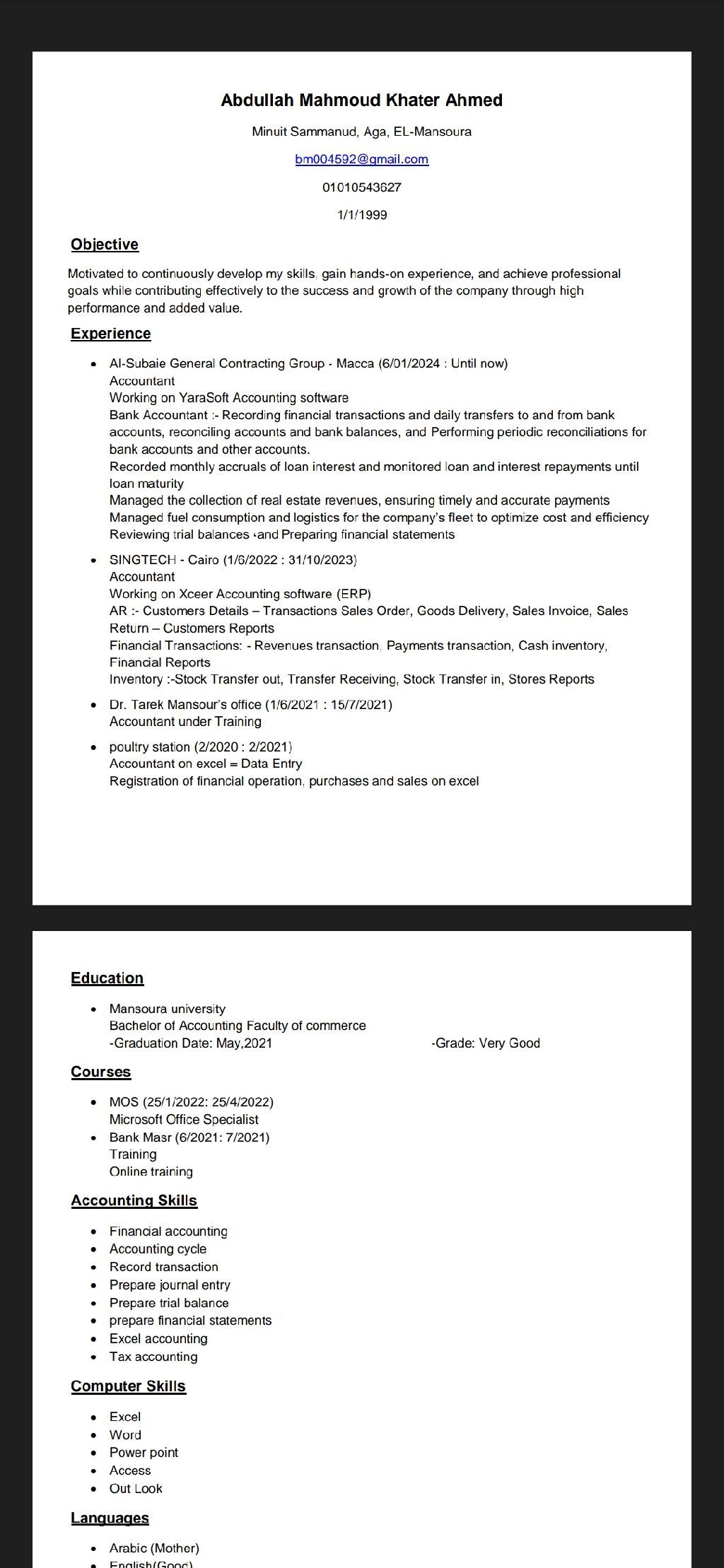 يطلب عمل حسابات في السعودية
