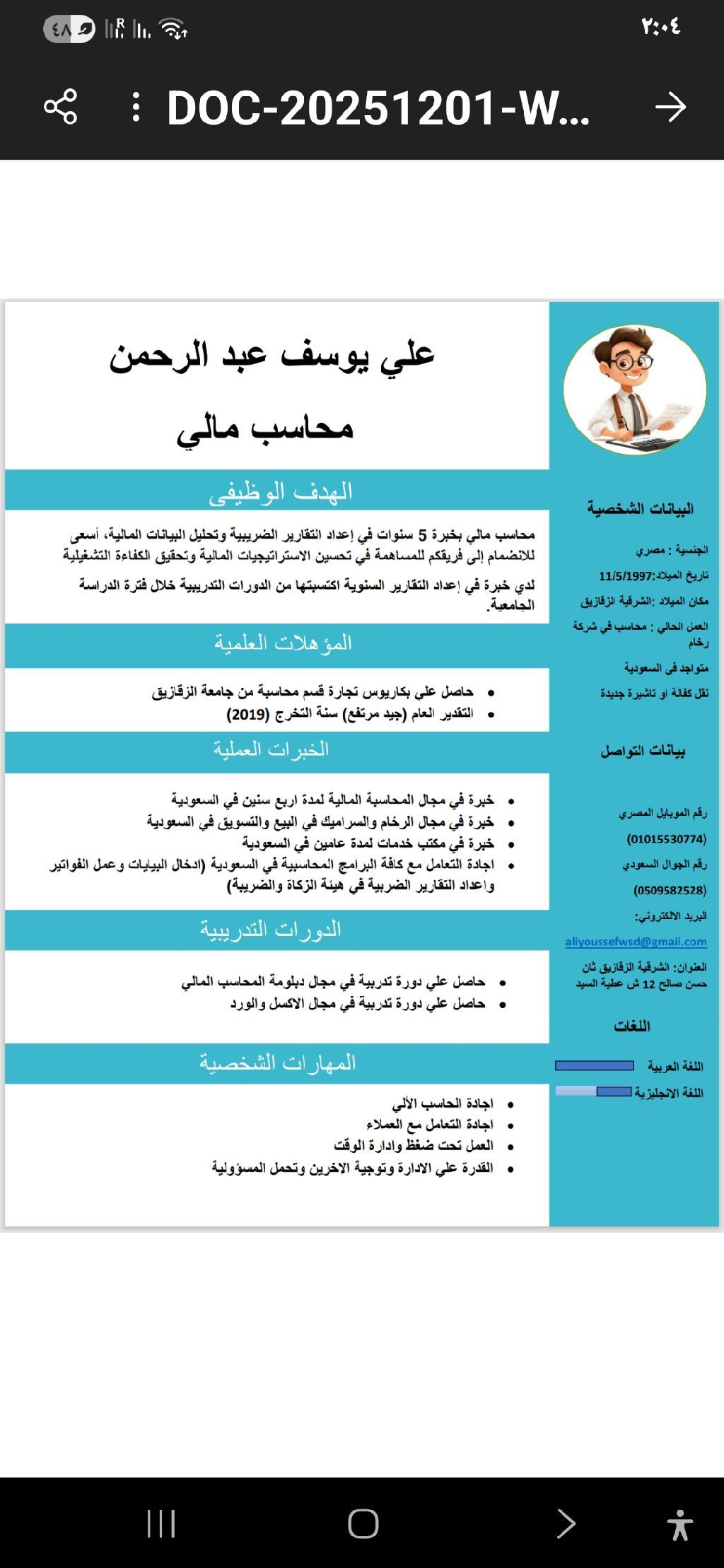 محاسب مصري خبرة أربع سنين في المحاسبة داخل السعودية خبرة في مجال الرخام والمغاسل والمشبات والمطابخ خبرة في شغل الخدمات الالكترونية اجادة الحاسب الآلي ودا خال البيانات