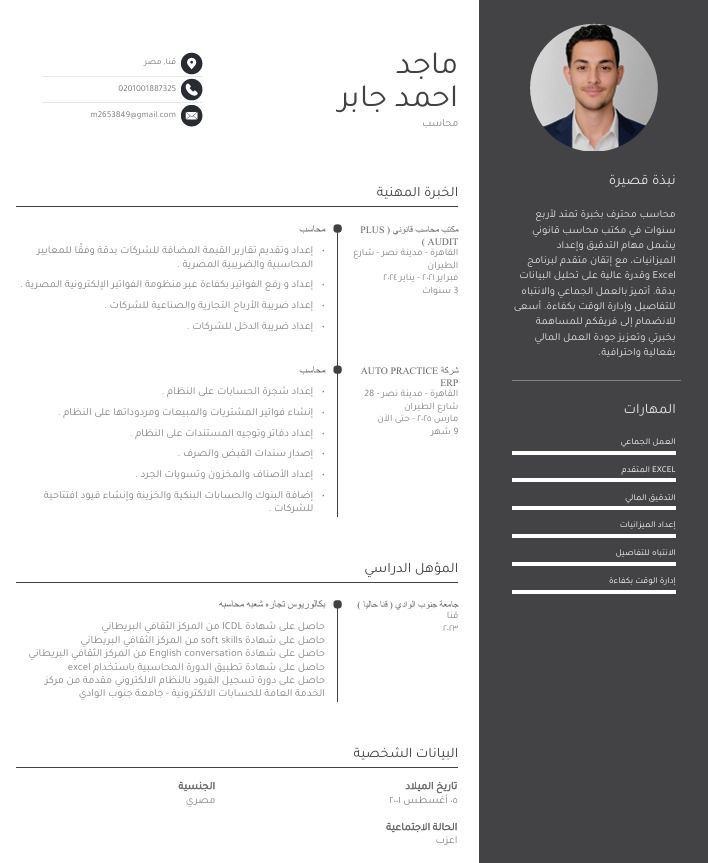 محاسب عام خبرة 4 سنوات اجادة كل العمليات المحاسبية من تأسيس الدورة المستندية الى اعداد القوائم المالية خبرة في اعداد الاقرارات الضريبية وخبرة في برامج ERP