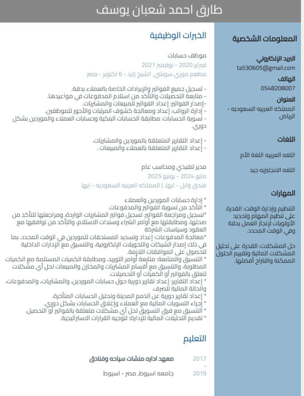 محاسب مصري ابحث عن عمل خبرة سنة خبرة في الاكسل والأودو وأستطيع العمل تحت ضعظ ولدي شغف للتطوير من نفسي ومن العمل ولدي قدرة ع سرعة الاندماج ل فريق العمل. لدي رخصة قيادة