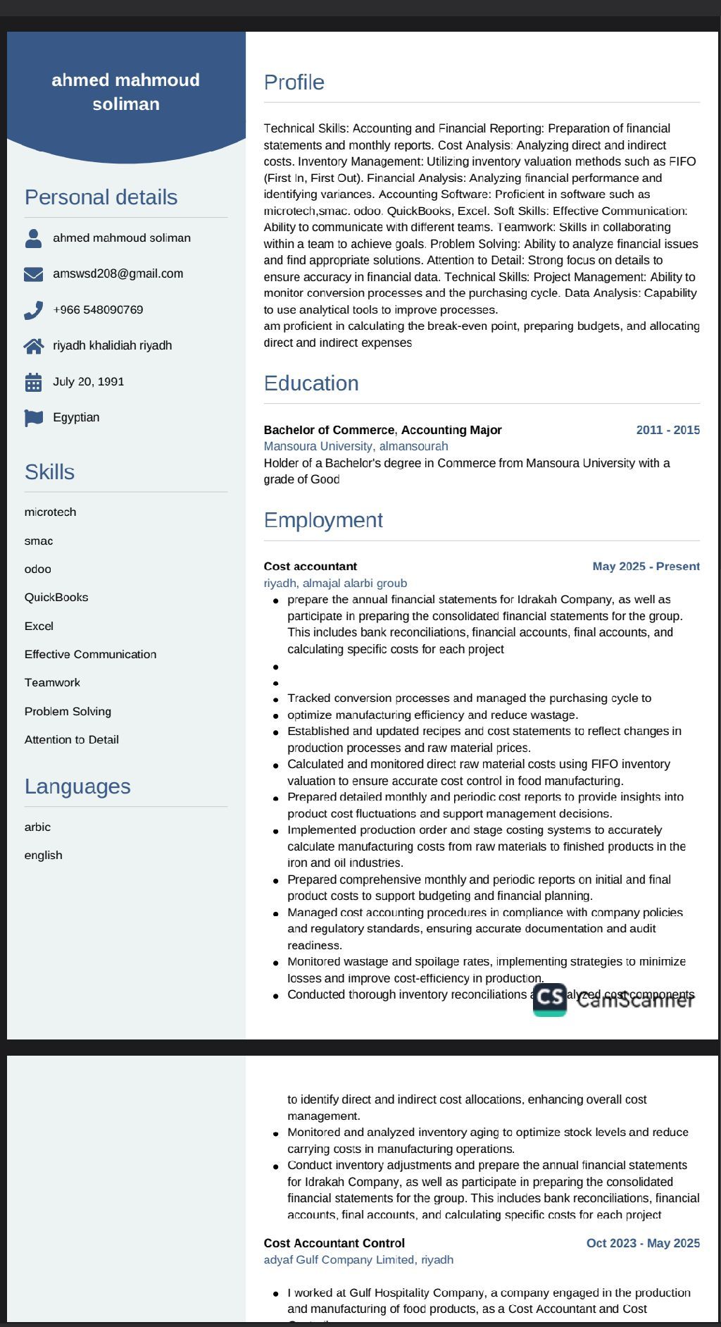 رئيس حسابات تكاليف ومالي خبرة 9 سنوات في الشركات الصناعية والتجاريه والمطاعم خبرة في التكاليف والرسبي. المحاسبه الماليه اعداد القوائم الماليه حسب المعايير الدوليه توزيع التكاليف الغير مباشرة نقطة التعادل هندسة المنيو. البنوك والتعامل مع متطلبات التمويل والقروض للشركات