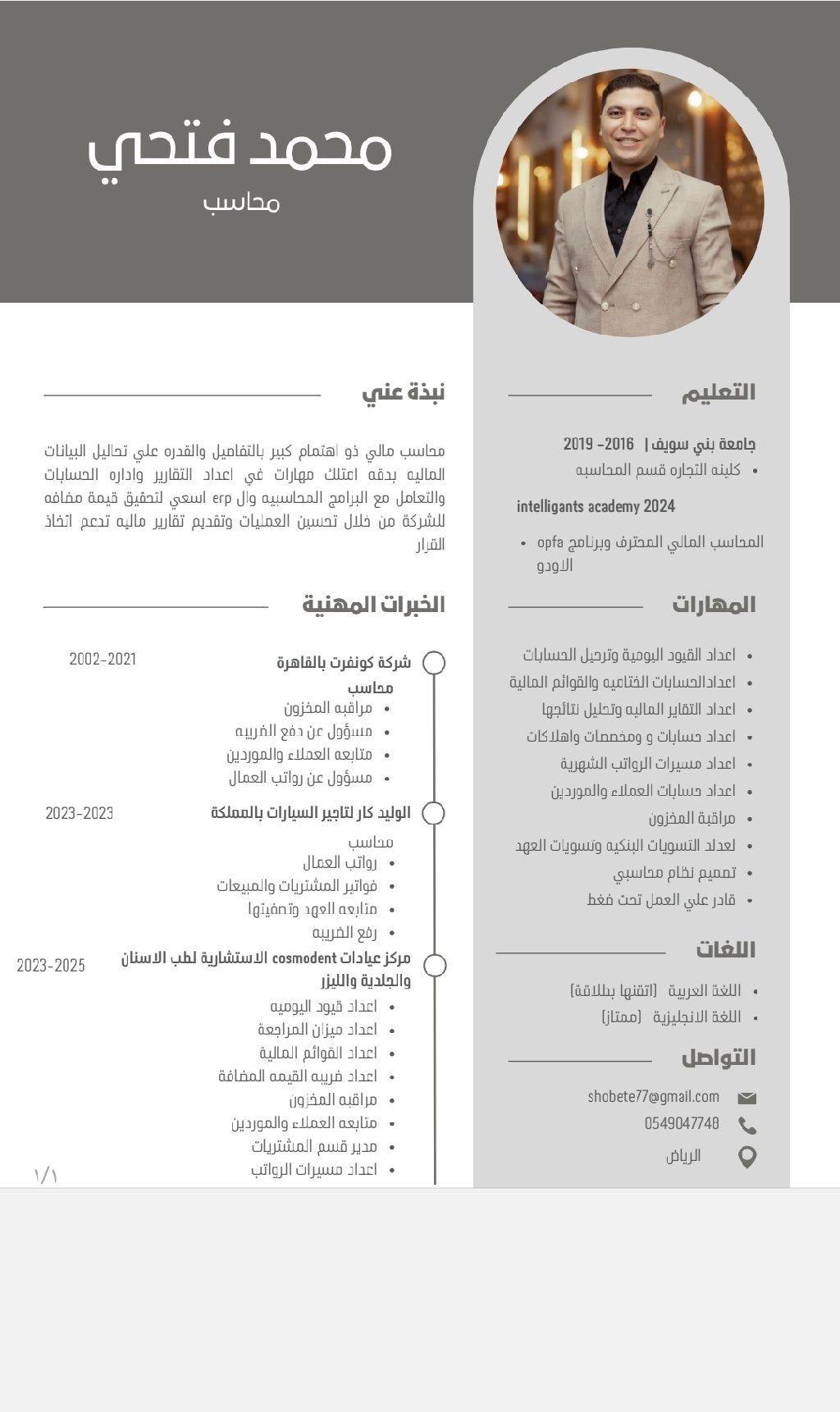 محاسب مصري خبرة 5 سنوات لدي القدرة على التعامل مع كافة البرامج المحاسبية ERP وبرامج الأوفيس واعداد التقارير المالية والتسويات البنكية ومسيرات الرواتب ومتابعة العملاء والموردين ومتابعة المخزون وتقارير ضريبة القيمة المضافة ولدي خبرة في المجالات الطبية وفي شركات تأجير السيارات
