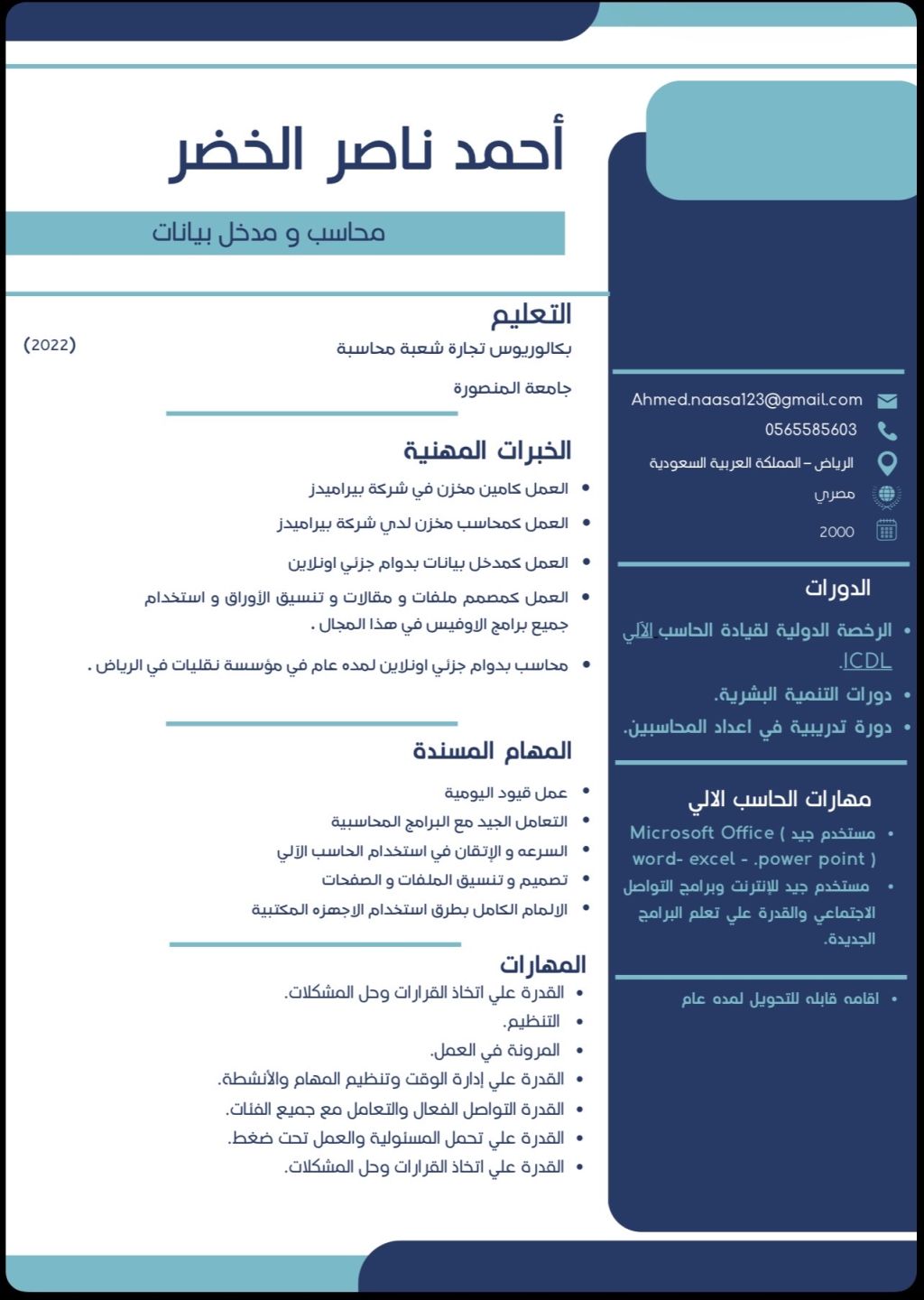 محاسب مدخل بيانات حديث التخرج أمين مخزن أ