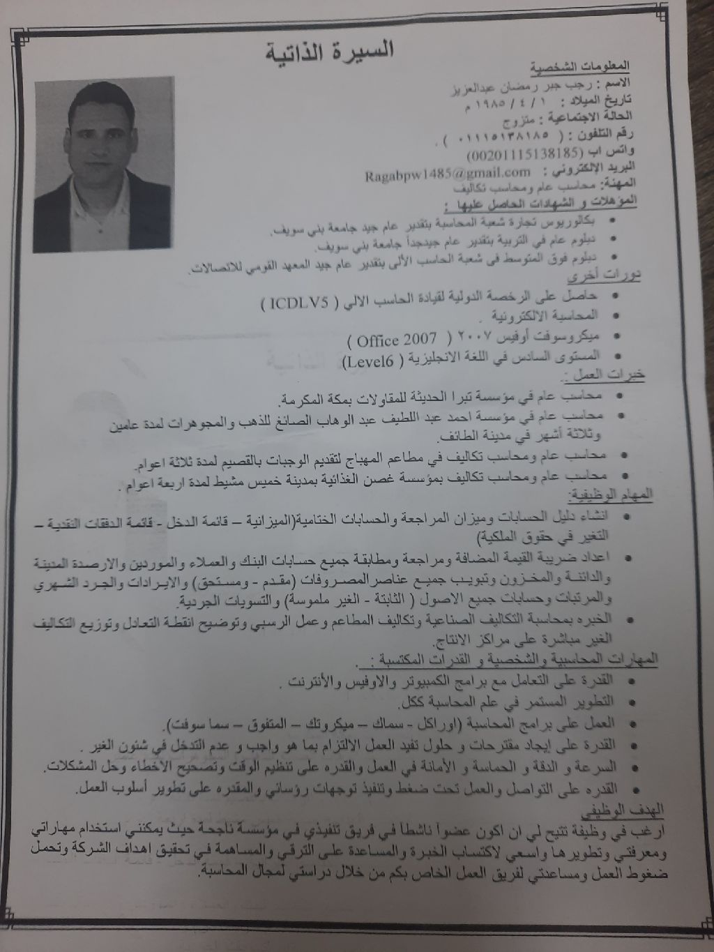 محاسب مصري خبرة 12 عام بالمحاسبة المالية ومحاسبة التكاليف خبرة باعداد وتنظيم دليل الحسابات والأرصدة الحسابية وادخال القيد الافتتاحي